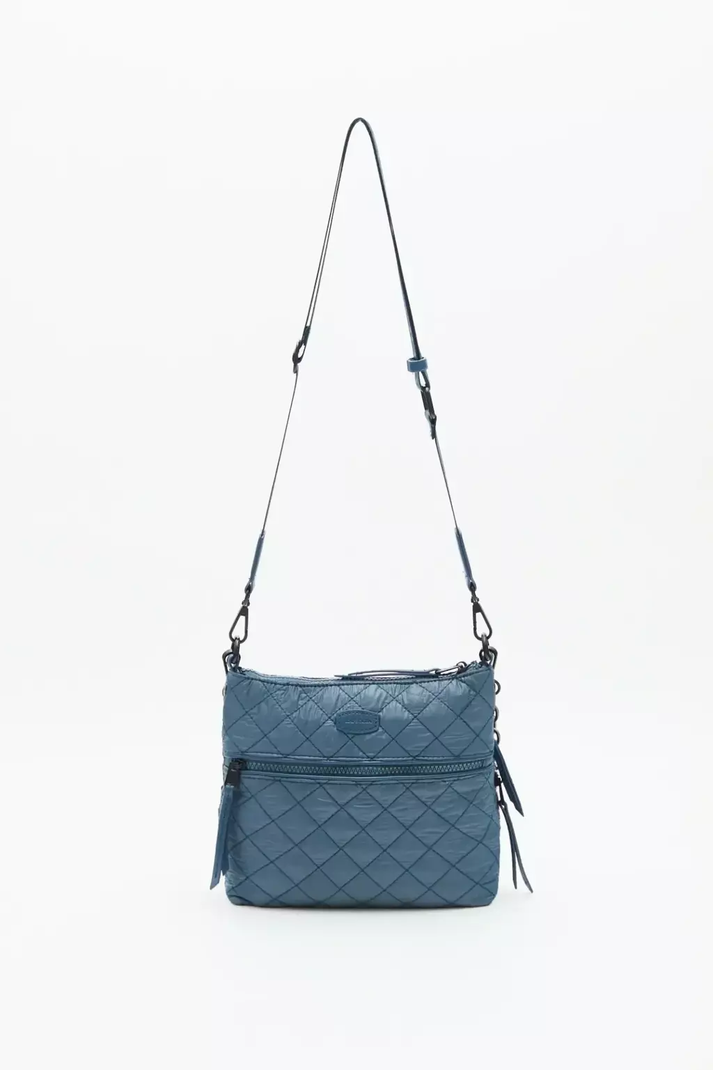 Bandolera matelasse con múltiples bolsillos y acceso principal con cierre. Cuenta con dos correas desmontables, una larga y regulable y otra cadena de metal que suma el acento rock. Con un interior espacioso, es lo suficientemente grande para guardar tus elementos esenciales para el día o la noche.