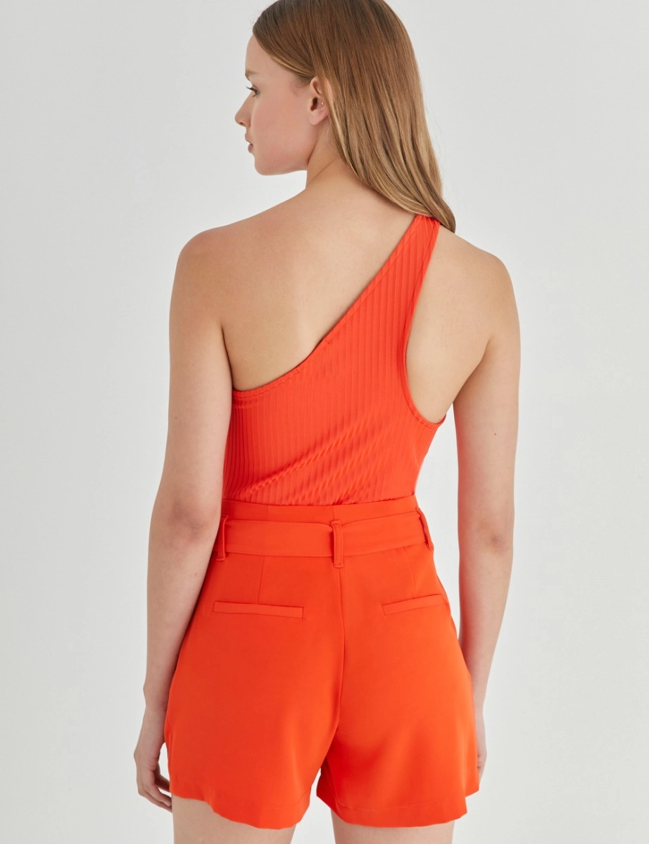 Musculosa de un hombro realizada en morley con espalda cavada. Calce clásico. Una prenda on-trend y cómoda para uso urbano.