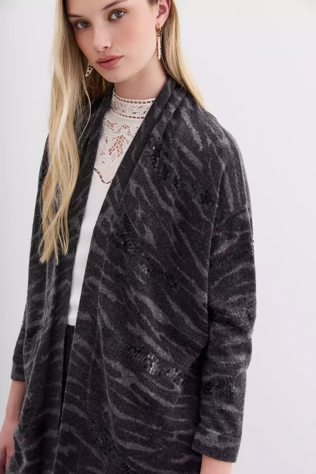 50% poliamida 44% acrílico 3% casimir 3% seda con aplicación.